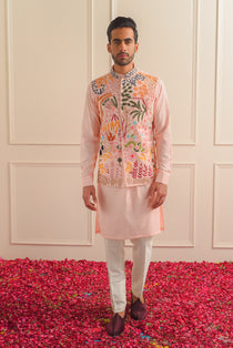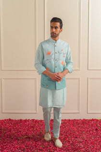 Try: Tejasvi Jacket – a sharp, structured design that pairs beautifully with pastel kurtas.