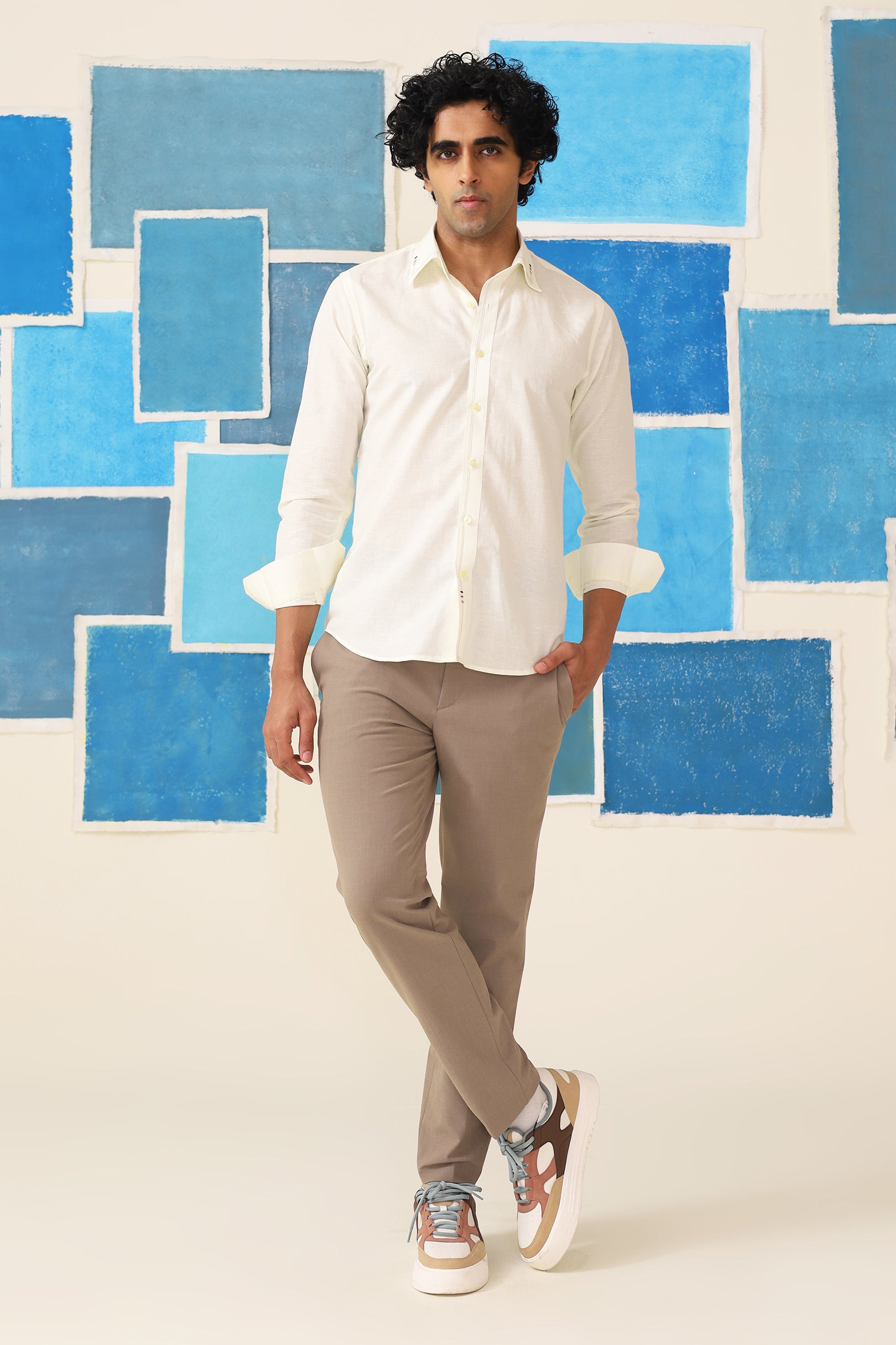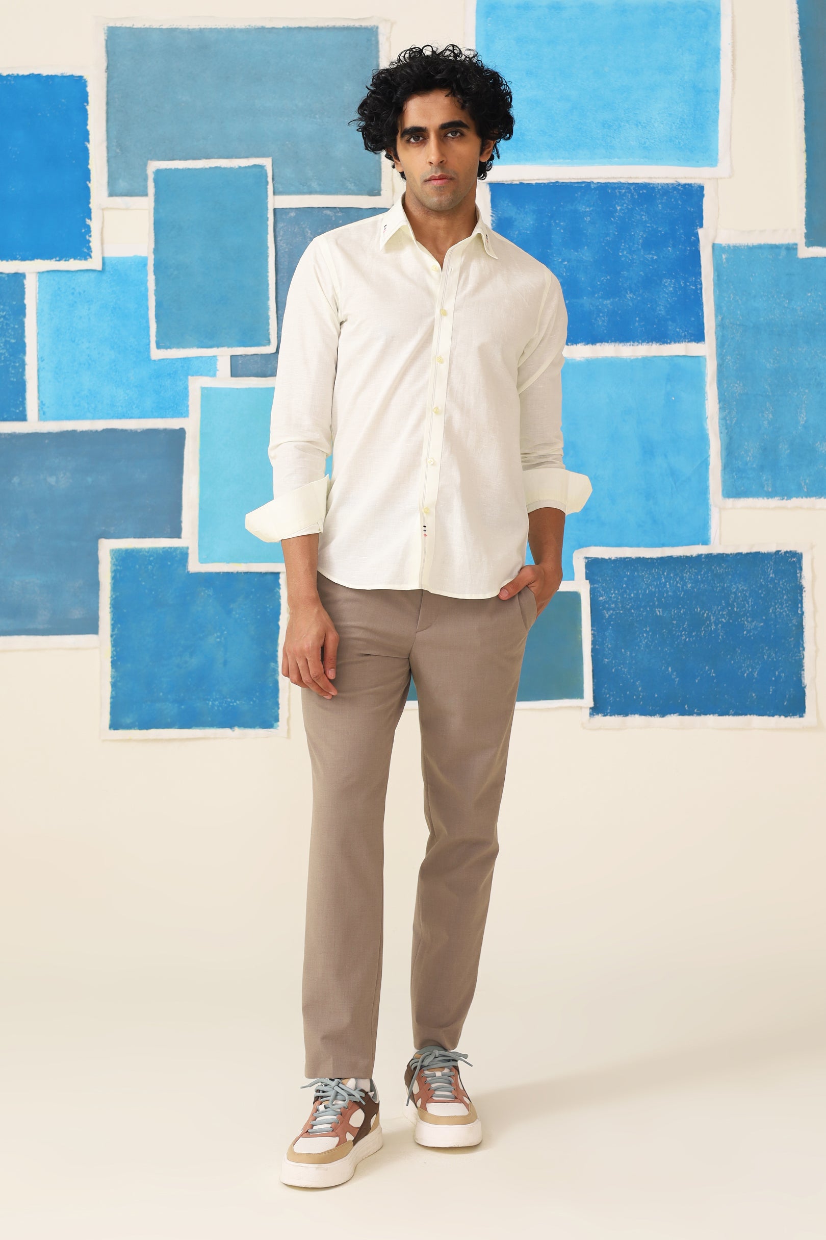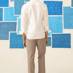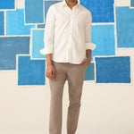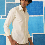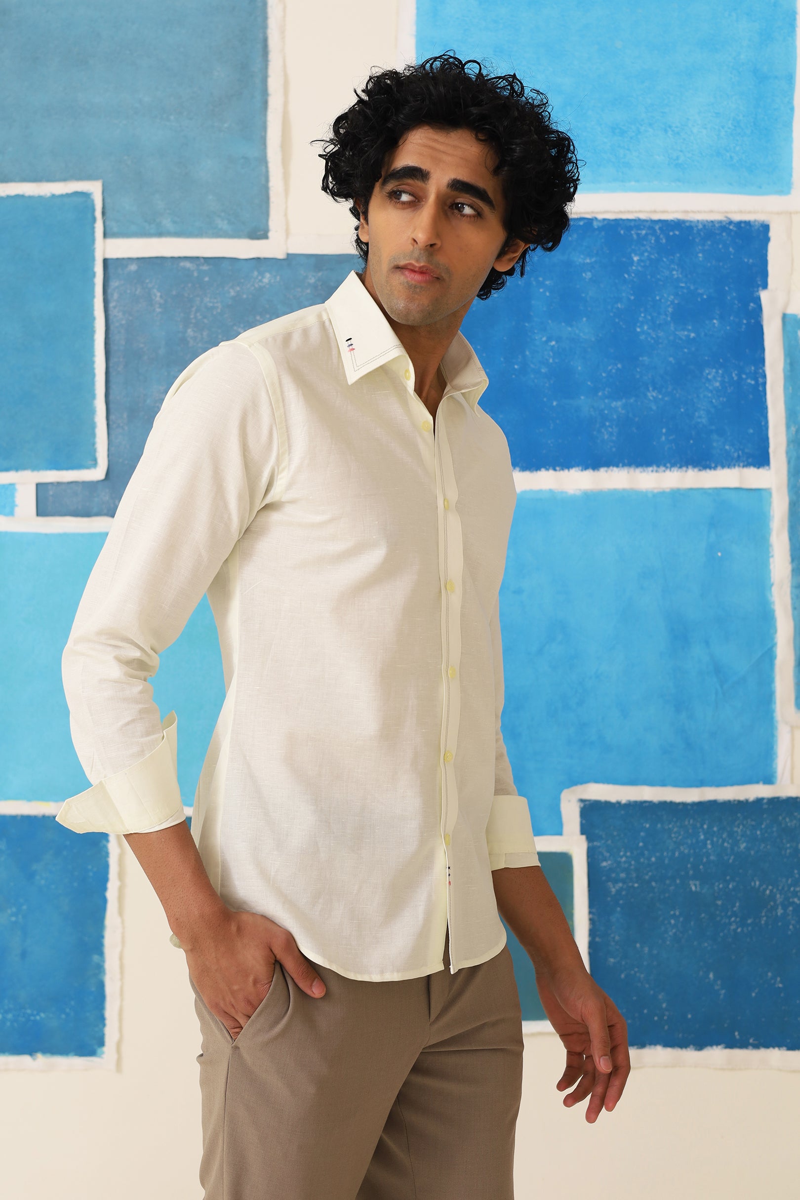 Elevate your everyday wardrobe with our Ivory Linen Shirt, a timeless essential crafted from the finest breathable linen. Designed for the discerning gentleman, this shirt features a sleek silhouette with a soft, natural drape. Subtle contrast hand embroidery on the collar and placket adds a refined, artisanal touch—an ode to understated elegance.
