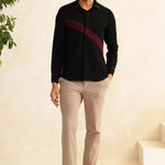 Midnight Line-Japanese Black Shirt with Burgundy Slash