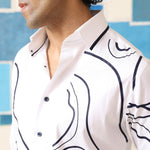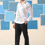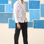 Unveil a blend of modern art and timeless elegance with the Monochrome Wave shirt. Crafted from luxurious Giza cotton, this shirt offers unparalleled comfort and a smooth finish. The striking digital print features bold black wave patterns that flow across the white fabric, creating a captivating, dynamic look. Perfectly suited for those who appreciate abstract art in their wardrobe, this shirt combines a minimalist design with a touch of creativity. Whether dressing up for a casual day out or adding flair to your evening ensemble, the Monochrome Wave shirt brings versatility and style to your closet.