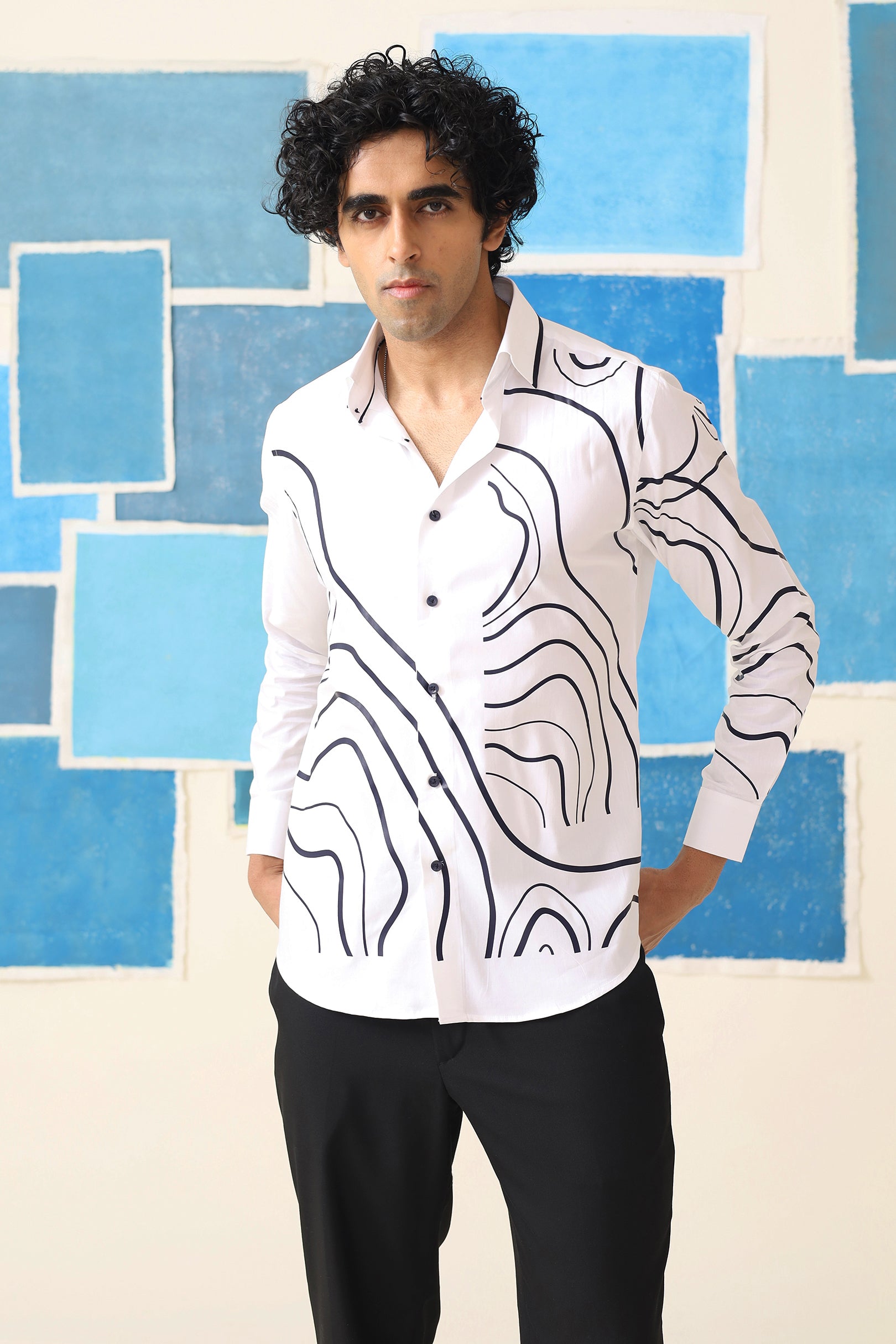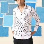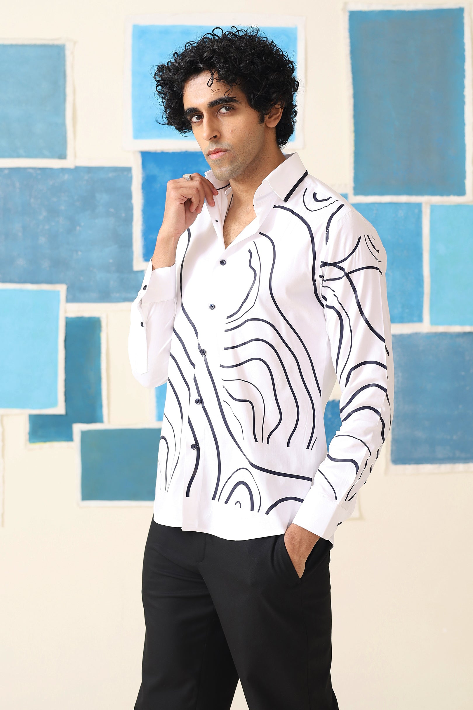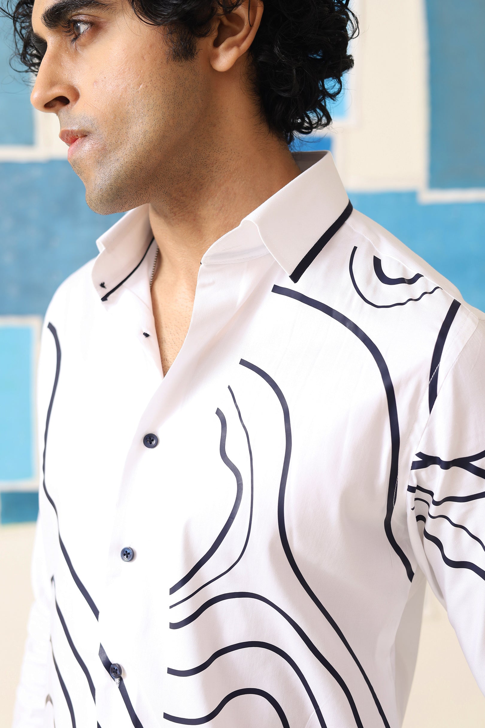 Monochrome Wave – Giza Cotton Digital Print Shirt