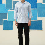 This elegant shirt made from the finest Giza cotton is designed to offer both comfort and style. The subtle light blue shade adds a touch of freshness, while the pintuck pleats across the chest elevate its contemporary appeal. With its sleek and structured fit, this shirt is perfect for both formal occasions and casual outings.