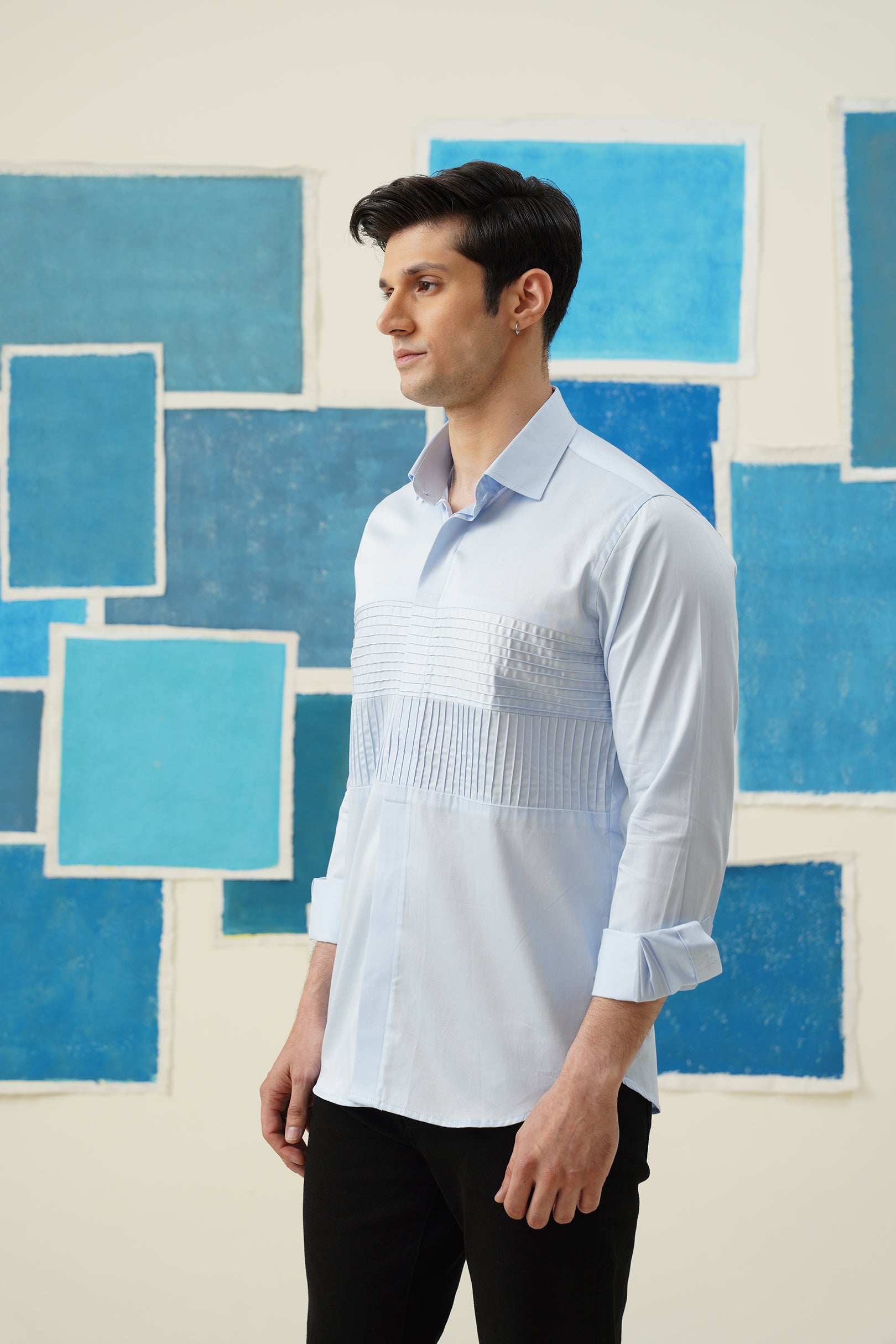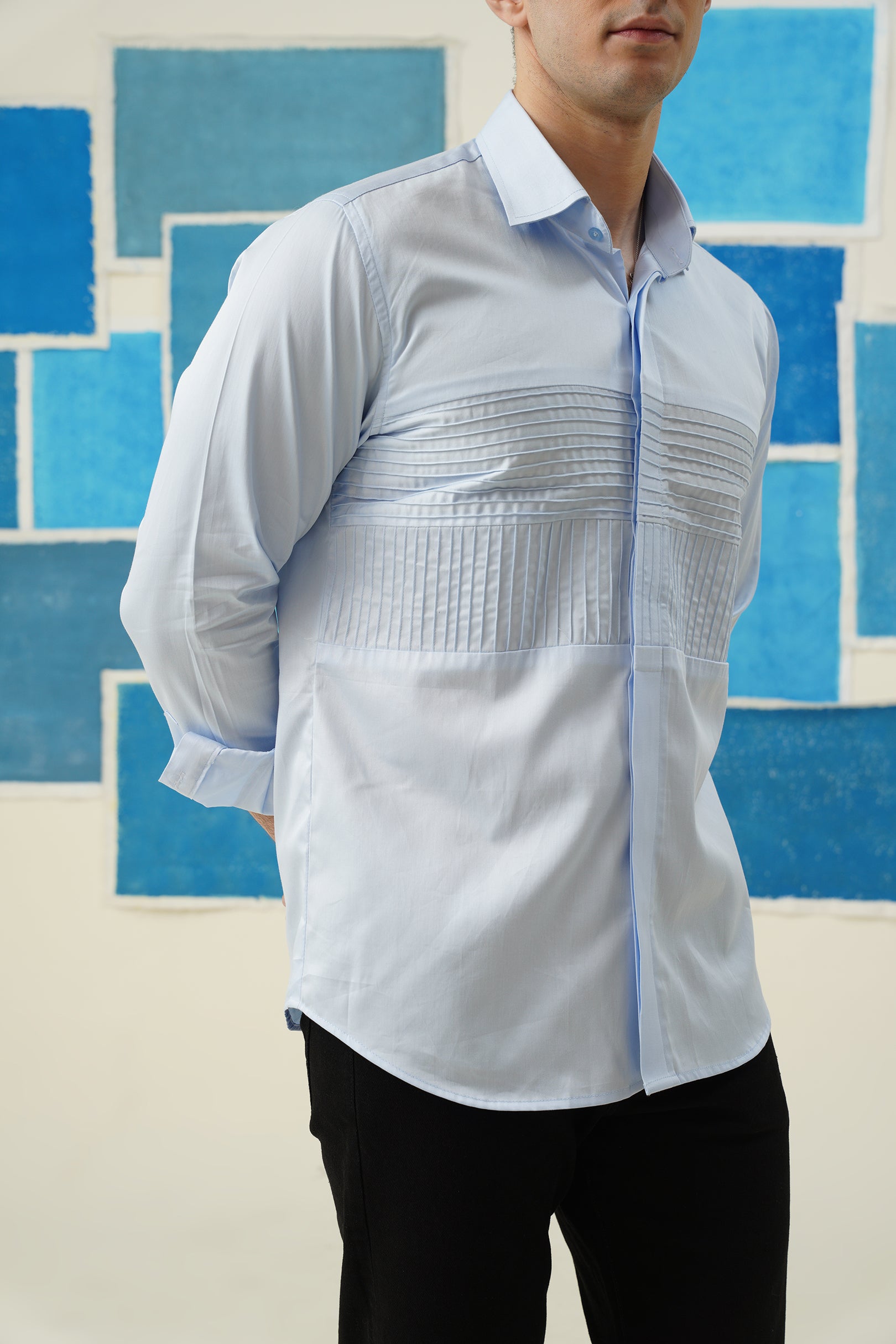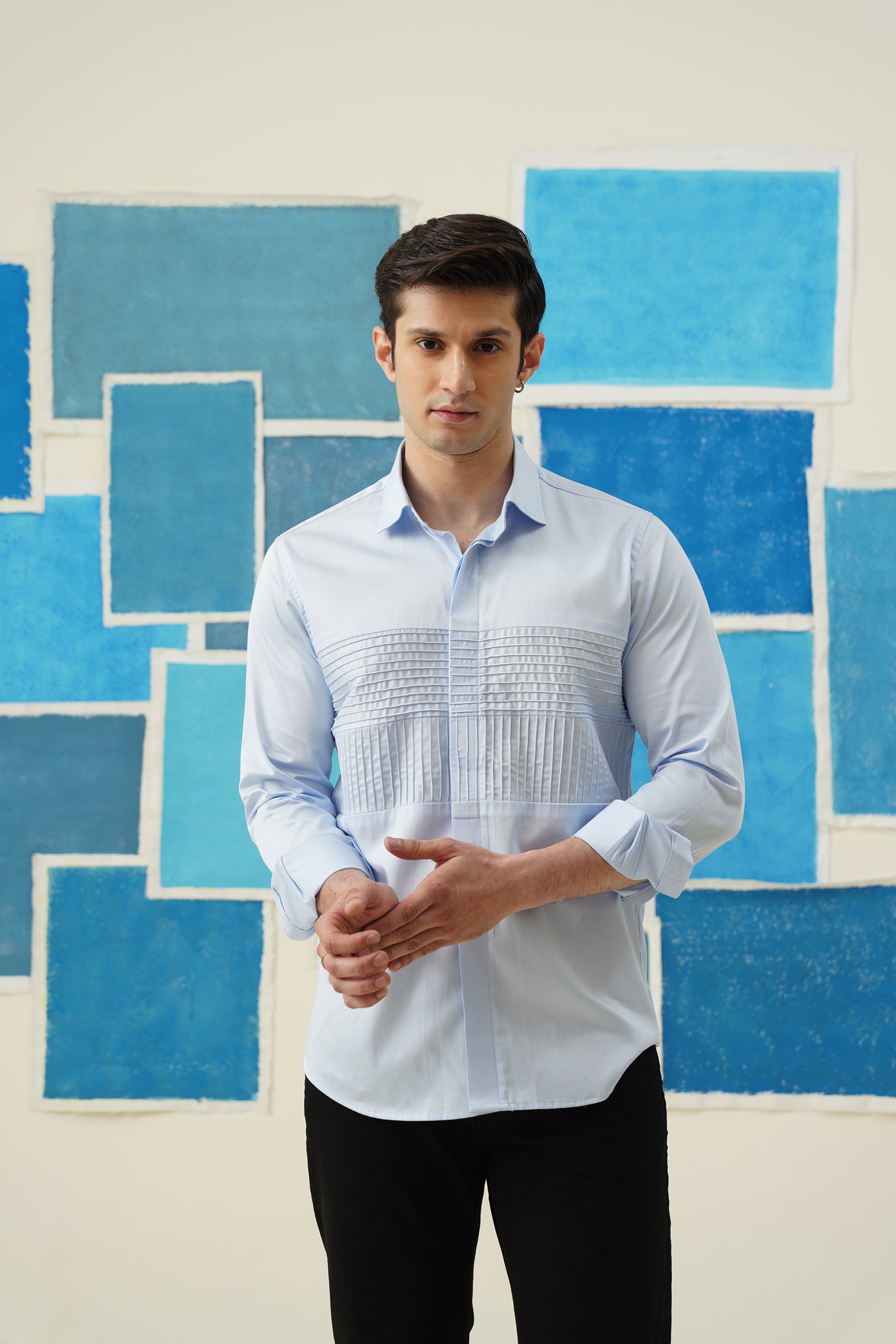 Pintuck Elegance – Light Blue Giza Cotton Shirt