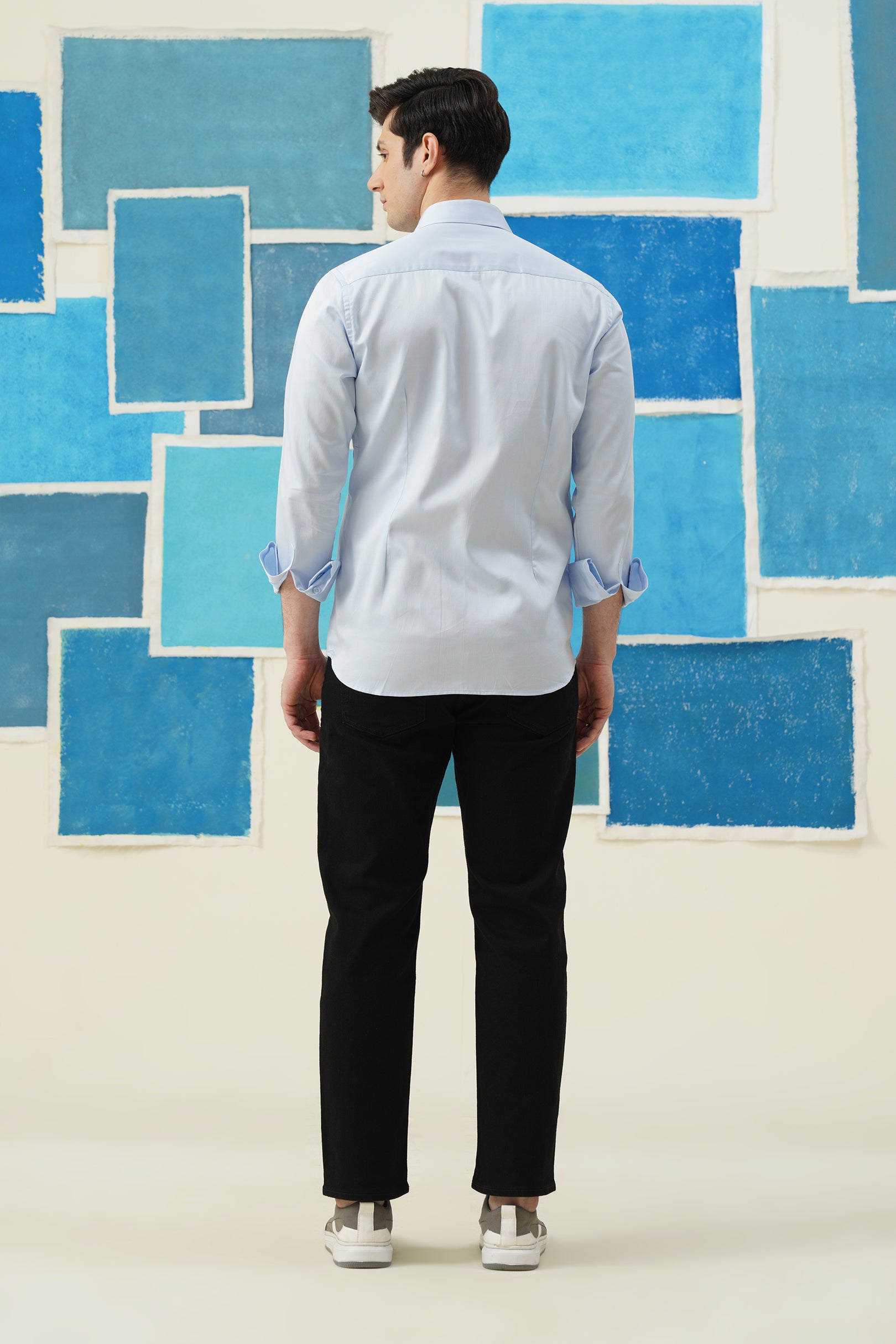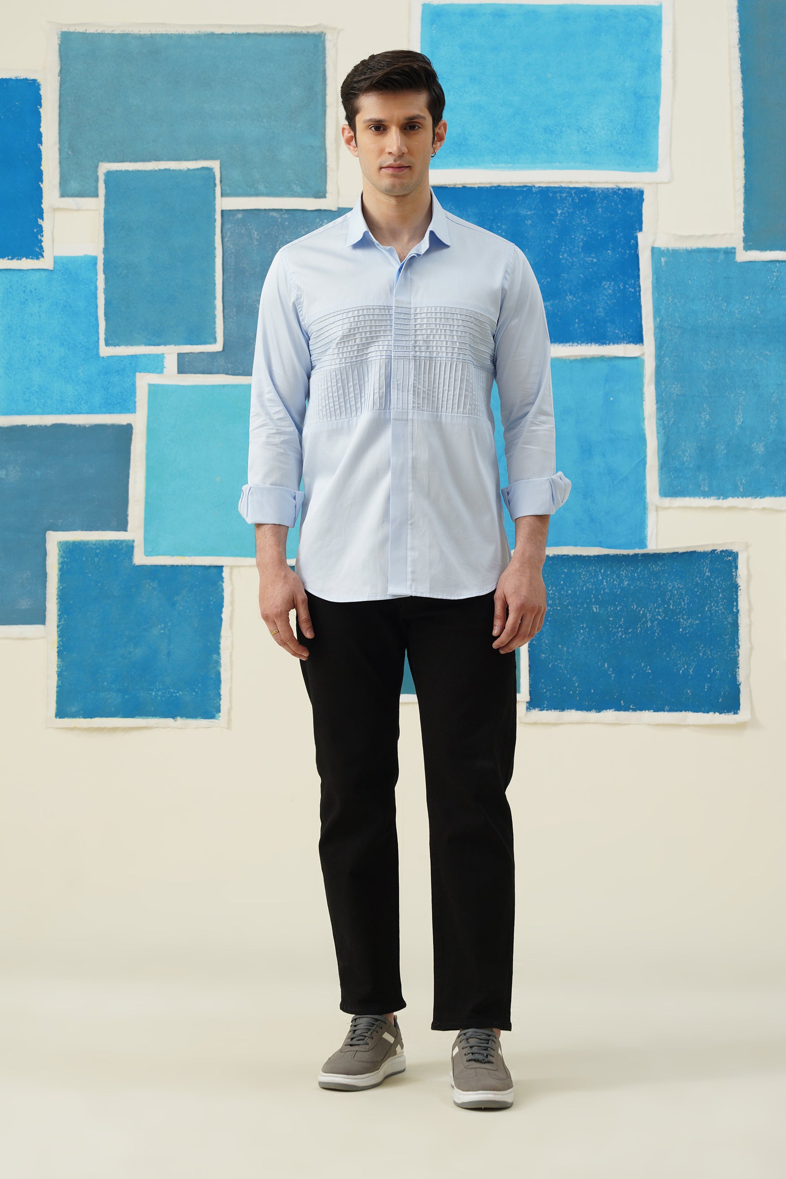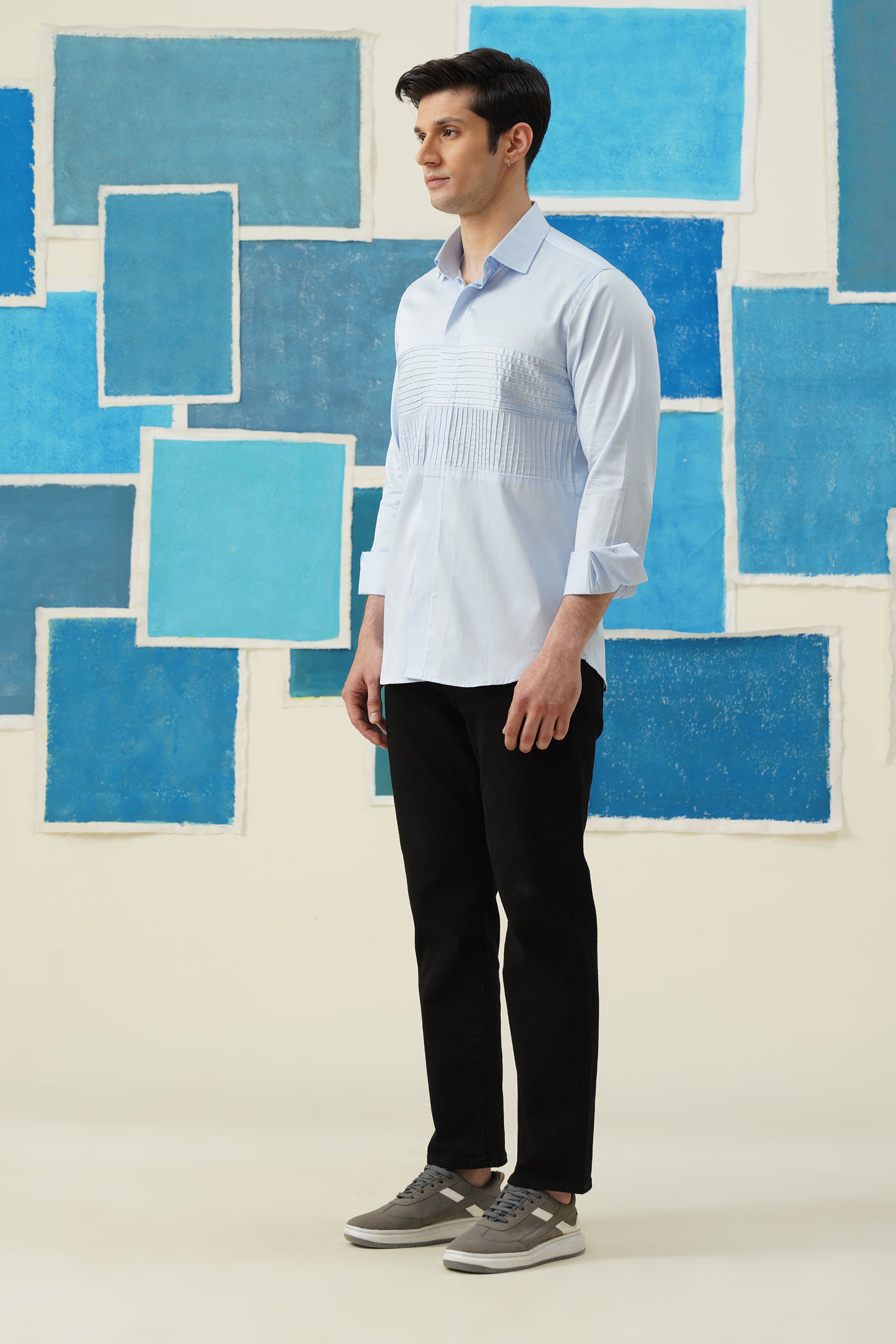 Pintuck Elegance – Light Blue Giza Cotton Shirt