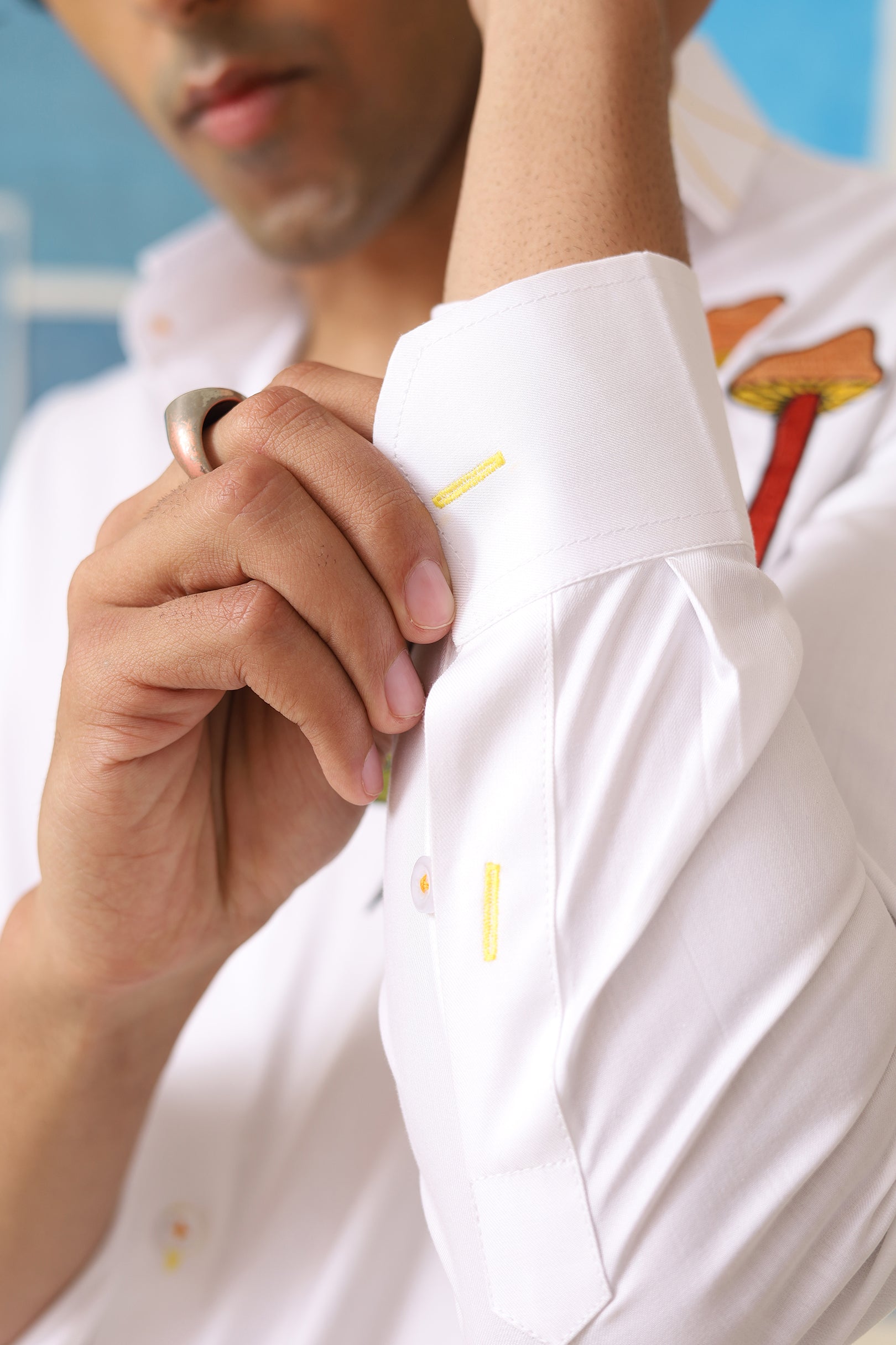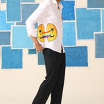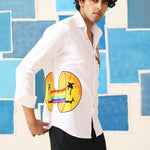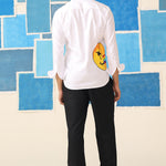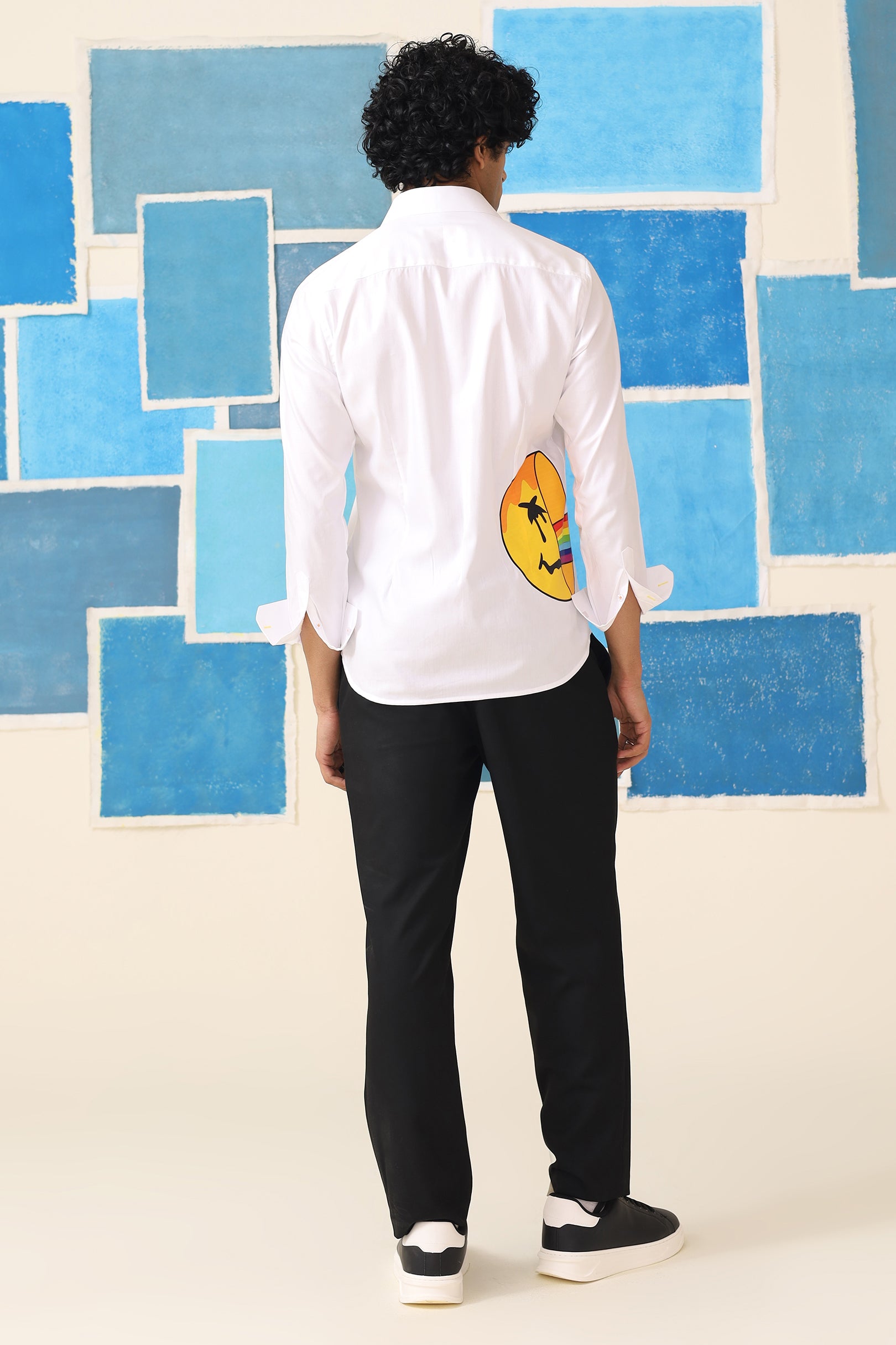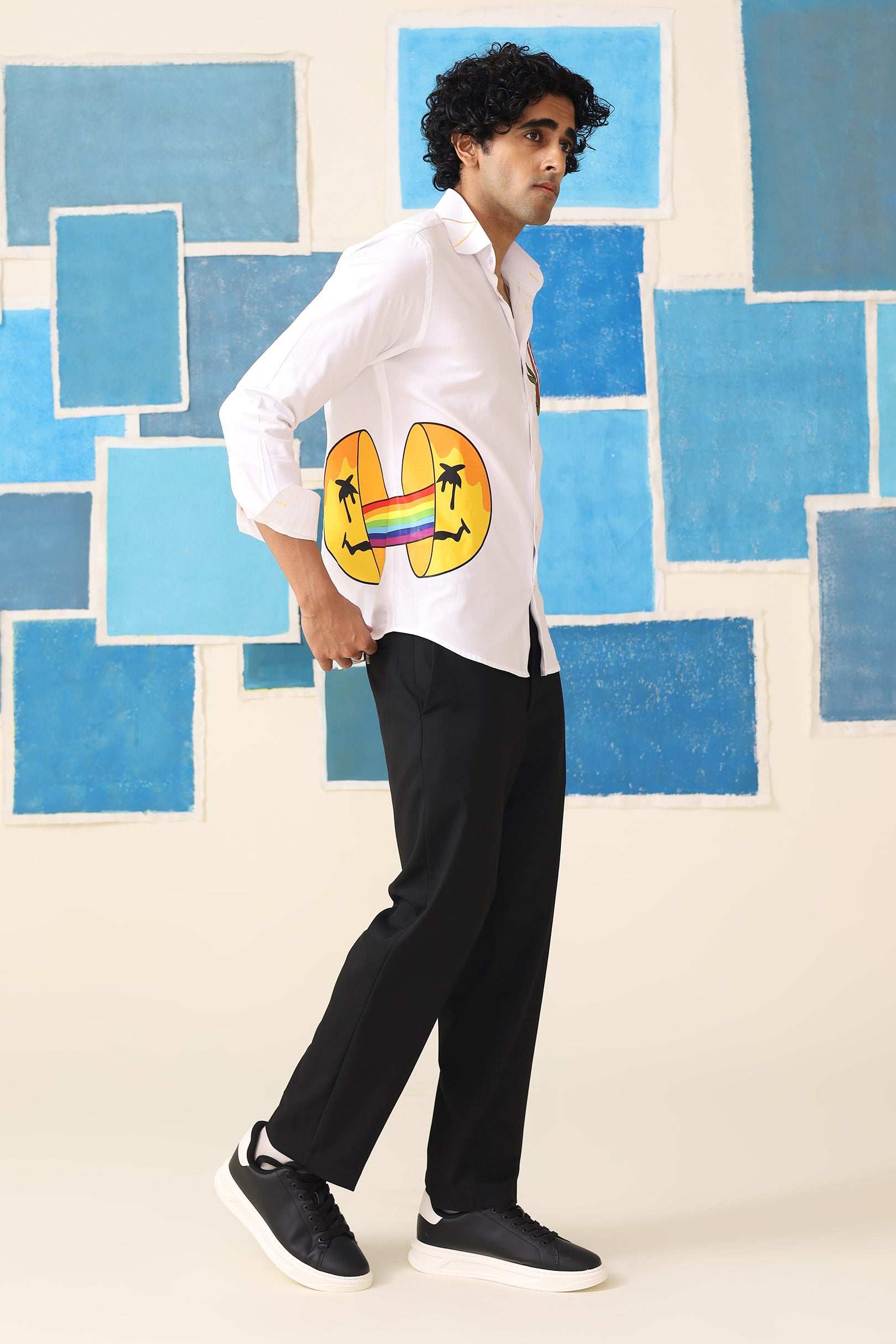 Step into the spotlight with our Rainbow Vibe Digital Print Shirt, designed for those who aren't afraid to make a statement. Made from crisp, breathable cotton poplin, this white shirt features a bold and playful digital print of animated yellow smileys connected through a vibrant rainbow beam on the side—bringing together joy, irony, and color in one unique design.