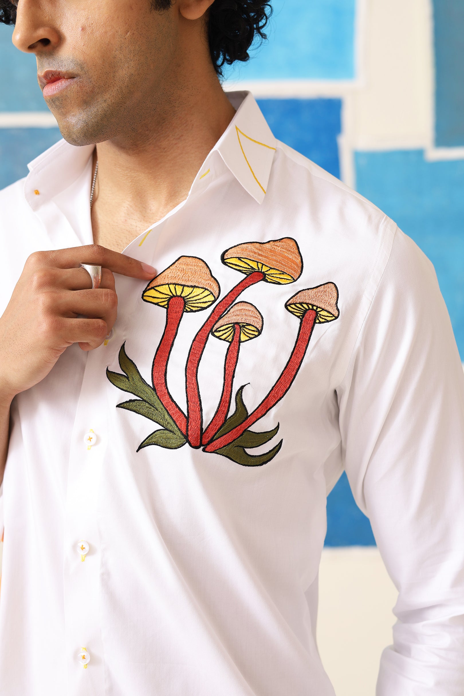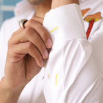 A sharp spread collar with subtle yellow line detail and a tailored fit ensures sophistication meets quirk. Perfect for art events, sundowners, or creative outings.