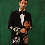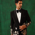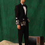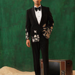 Embroidered Black Tuxedo Blazer with peak satin lapel