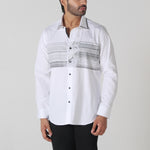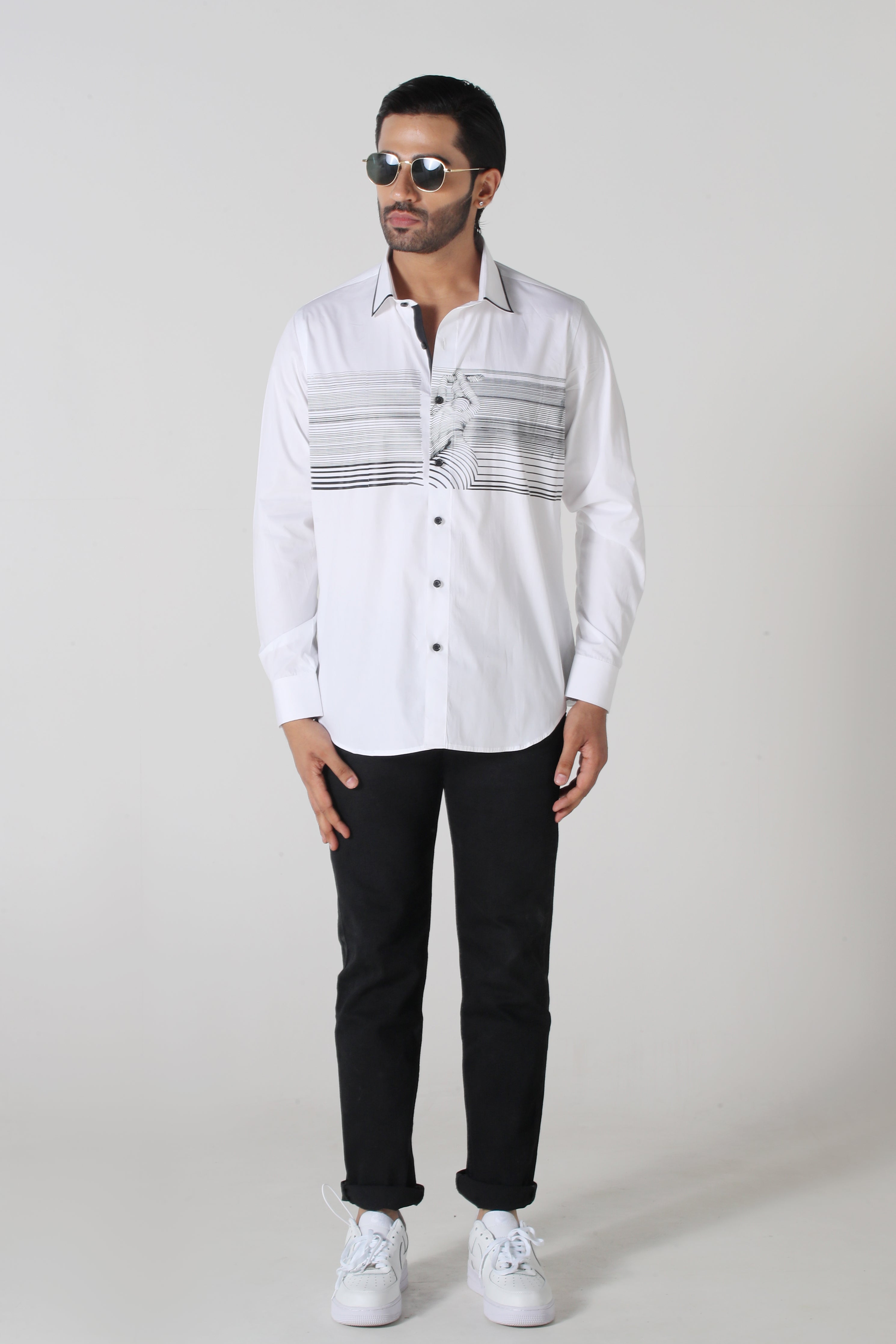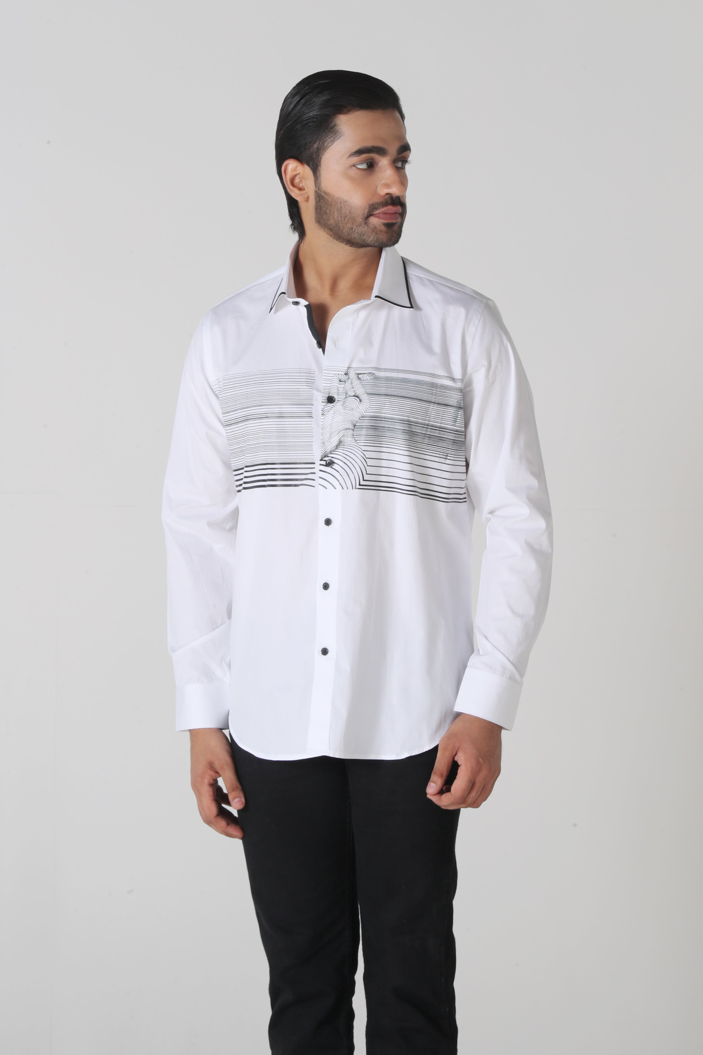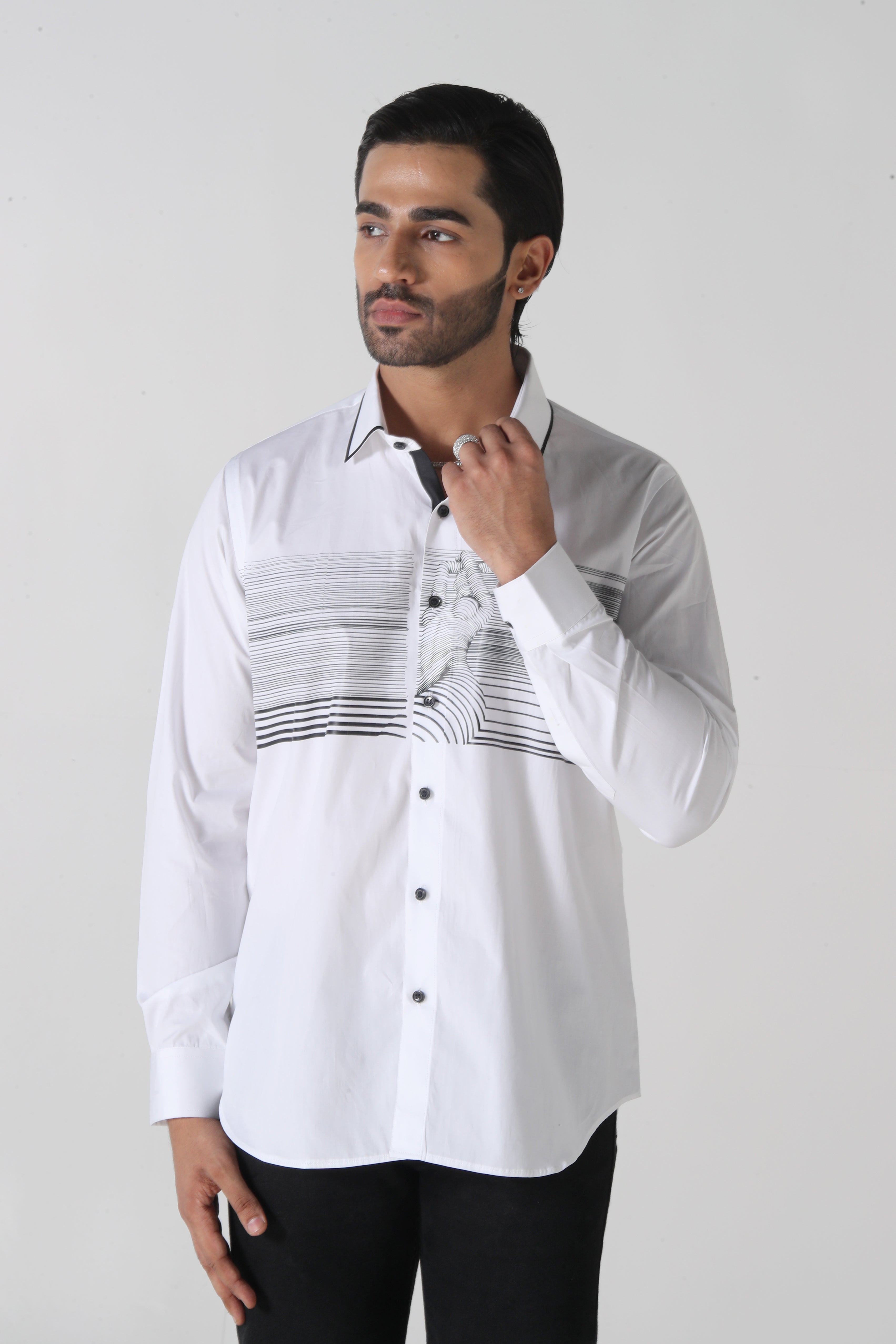 Our White shirt with contrast black detailing vegas inspired digital print is made from the finest Egyptian Giza cotton is perfect for a office & casual get-together. club them with a navy blue chinos or with brush blue denim - Designed specially for you with pride by our very talented craft-men .